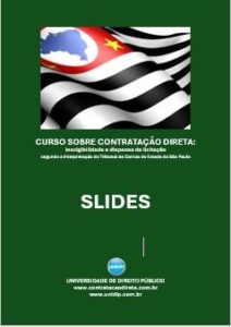 O material didático disponível na área do aluno é formado por: a) videoaulas distribuídas conforme o programa para serem assistidas pelo Youtube quantas vezes desejar; b) resumos em PDF de todas as videoaulas; c) slides em PDF das videoaulas; d) Livro digital “Contratação Direta”, versão atualizada do autor, Jamilson Lisboa Sabino.